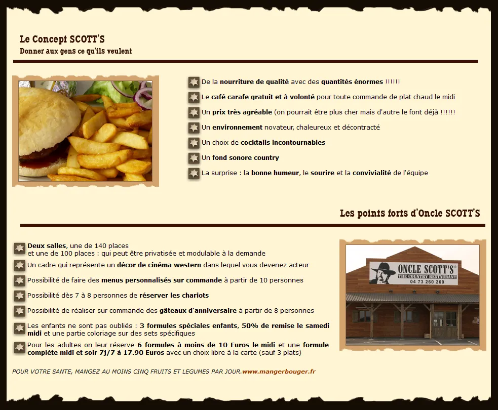 Site vitrine pour la chaine de restauration Oncle Scott's